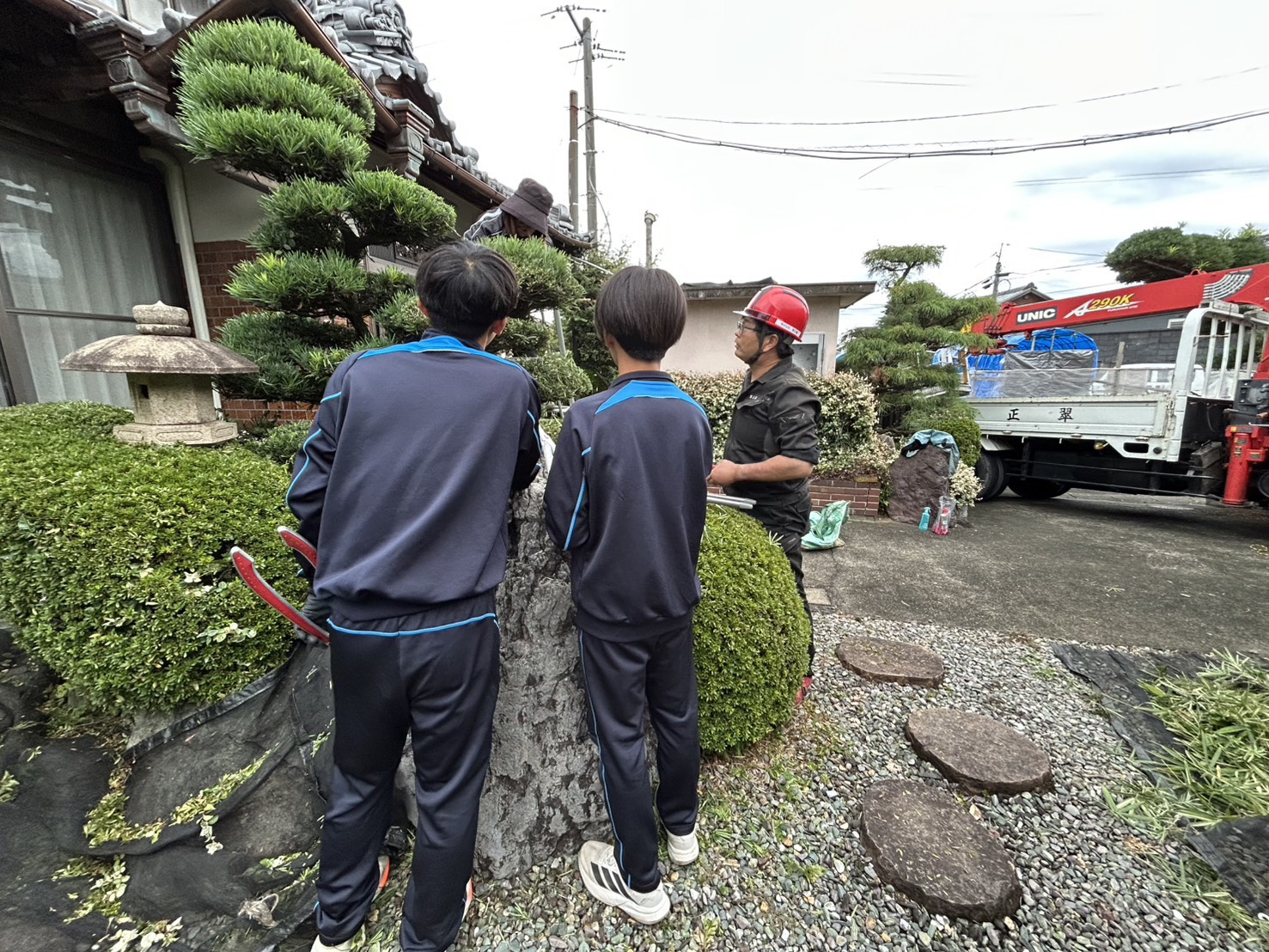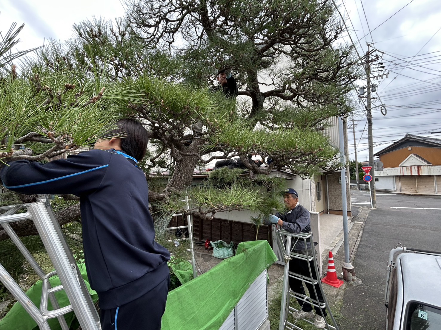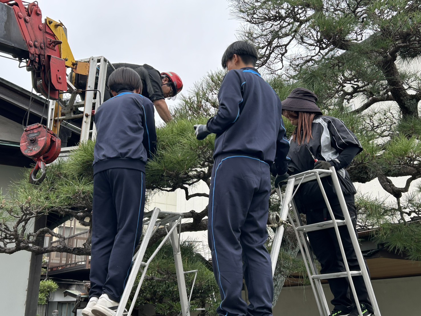 普段関わりがない内容の仕事なのに率先して分からない事を質問したり代表に松の剪定を教えていただいたり掃除をお手伝いしたり初日から最後までよく頑張って取り組んでくれました。
